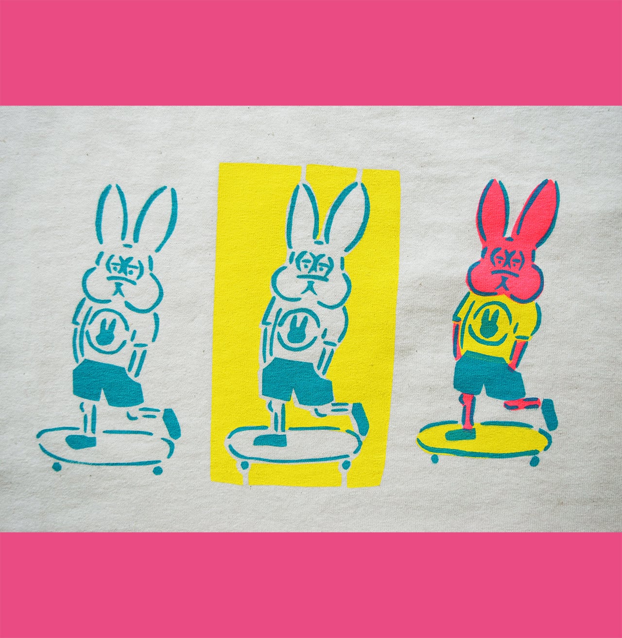 うさぎ3兄弟はスケートボードを練習中です。